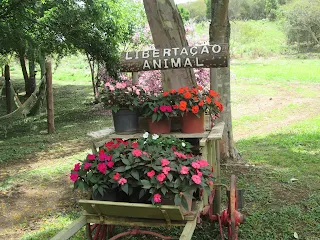papagaios, gansos, burrinho, galinha d'angola... (Ufa! De perder o fôlego!). Uma
